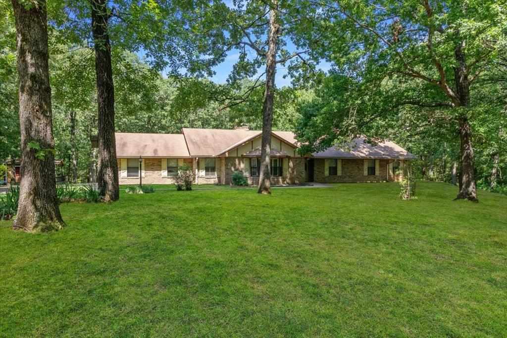 Discover your private retreat in this beautiful, secluded single-story brick home, nestled on 2.4 heavily wooded acres just moments from town. This charming older home boasts spacious rooms and a vaulted ceiling in the living room, complete with a wood fireplace. With 3 bedrooms and 2 bathrooms, the primary suite features a luxurious soaker tub perfect for unwinding. Enjoy additional living space in the separate den and sunroom. The property includes a two-car garage, a separate finished office shed, and a generous garden shed. While the home exudes character and warmth, it offers a wonderful opportunity for updates to make it your own. Embrace tranquility and convenience in this hidden gem.