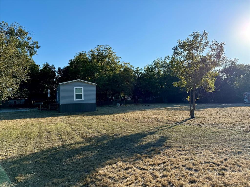 This property offers just under 1 acre of land in downtown Palo Pinto, featuring a spacious 1,080 square foot single-wide mobile home. With Car ports and Shop. The home boasts a modern layout, including an open-concept kitchen and living area, ideal for comfortable living. Large windows allow plenty of natural light to fill the space, while the kitchen includes a central island with a sink, perfect for both meal prep and entertaining. Surrounding the home, the property enjoys mature trees that provide ample shade and a serene, rural feel. The exterior includes a small porch area, and the spacious yard provides plenty of room for outdoor activities. The land is mostly open and ready for personalization, offering potential for gardening, outdoor recreation, or additional structures.